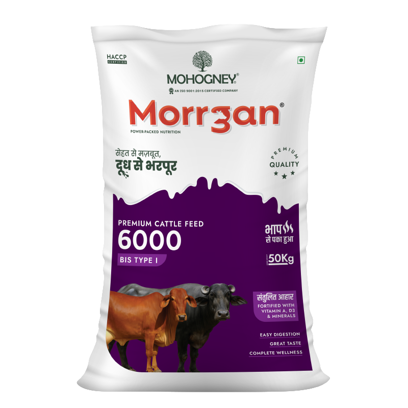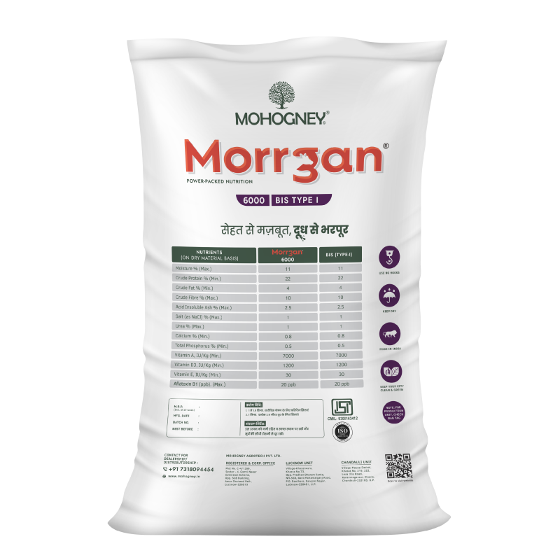 Morrgan 6000 (BIS TYPE 1) is expertly designed for dairy cattle producing 10-15 litres of milk per day, delivering advanced nutrition to match their elevated energy and protein needs. Enriched with vitamins A, D3, E, and yeast culture, this feed helps boost immunity, improve digestion, and enhance reproductive performance – making it the perfect choice for high-performing cattle.
